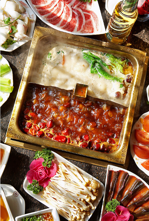 成都火锅以麻,辣,鲜,香著称,是四川的美食代表,而重庆火锅则偏重在麻,辣味更重。成都火锅首选牛油锅底,刀工讲究切得薄而不碎,食材丰富多样,其中人气最高的有毛肚、鹅肠、鸭肠等,然后配以芝麻油碟食用,才算品尝到地道的成都火锅。