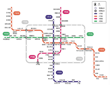 | 2号线 | 途经景点:天府广场、春熙路、金沙遗址、琴台路、人民公园。 运营时间:6:10-22:30 |