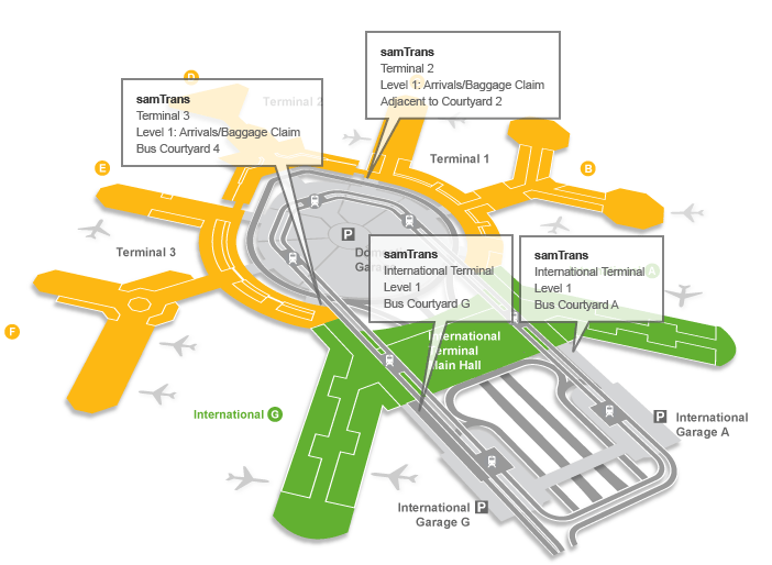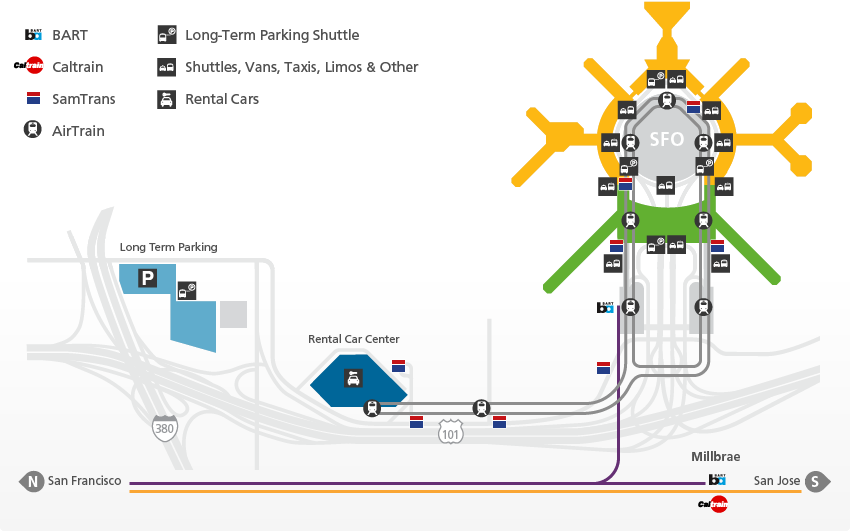 机场巴士连接了机场和旧金山市区、圣马特奥县 San Mateo County(硅谷里)。