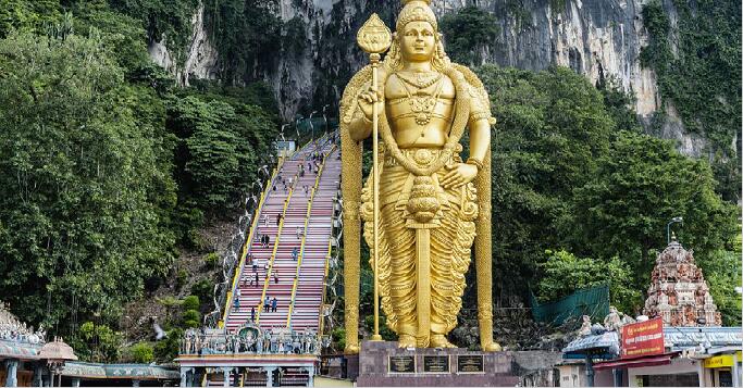 早上,驱车前往黑风洞。黑风洞是印度教胜地,除了极具宗教特色,还有著名的石灰岩洞穴,洞穴前威严挺立的高大金色佛像十分惹人注目。如果在一年一度的大宝森节时前往黑风洞,更能深刻地体验印度教文化的独特之处。由于参观黑风洞需要爬上272 个台阶,当天的行程会比较耗费体力,所以建议旅行者选择舒适的鞋子出行。在攀爬的过程中会看到成群结队的猴子,但是不要被这些可爱的小猴子的无害外貌所欺骗,有时候它们会凶猛的抢走旅行者手中的食物,所以要时刻注意保护自己的食物以及注意自身安全。