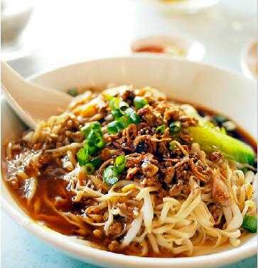生肉面乍听之下还以为是生的肉,其实这只是一种称呼。将猪肉汆烫后,使其口感嫩到入口即化,再搭配咖啡色的干捞面,就变成了沙巴人最爱的生肉面。生肉汤的汤头十分鲜甜,最地道的沙巴吃法是用一碗干捞面配一碗生肉汤。