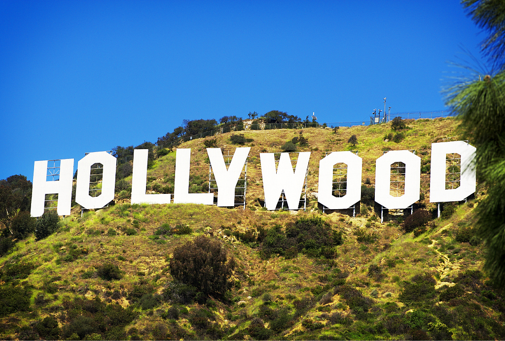 “好莱坞”(HOLLYWOOD)一词由八个白色大写英文字母拼写而成,全长45英尺(14米)。这一地标始创于1923年,原先是当地地产项目的广告,后来成为了洛杉矶的地标,也是美国电影文化的象征。