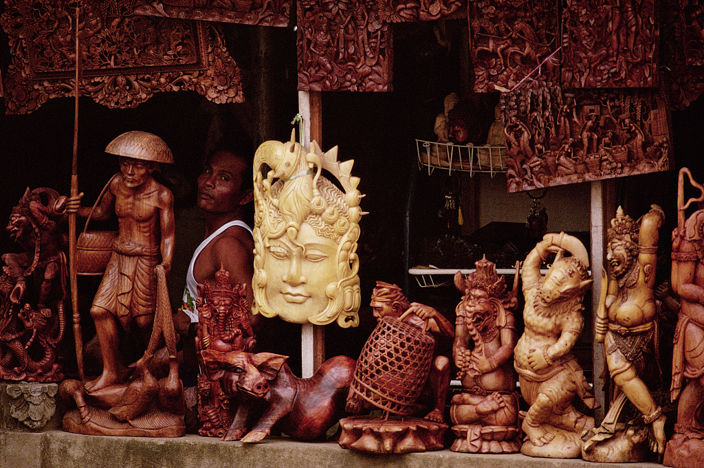 巴厘岛盛产手工艺品,尤其以木雕为代表。巴厘岛木雕以黑檀木雕刻而成,工艺精湛,线条流畅,注重细节,富有巴厘岛民俗特色。