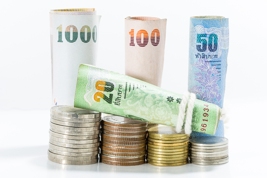 注释:泰国货币有5、10、20、50、100、500及1000泰铢等七种面额的纸币,5、10、 20、50萨当以及1、5、10泰铢铸币。