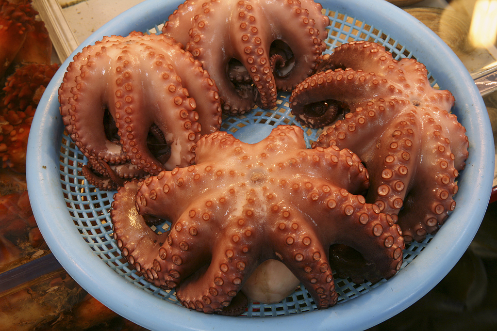 生鱼片在釜山的很多地方都能买到,相比其他城市,价格也不贵。一顿经典的生鱼片晚餐,首先会上一道开胃菜,比如章鱼刺身,然后就是主菜生鱼片,一般要蘸着辣酱吃,最后通常以米饭配辣味鱼汤结束。