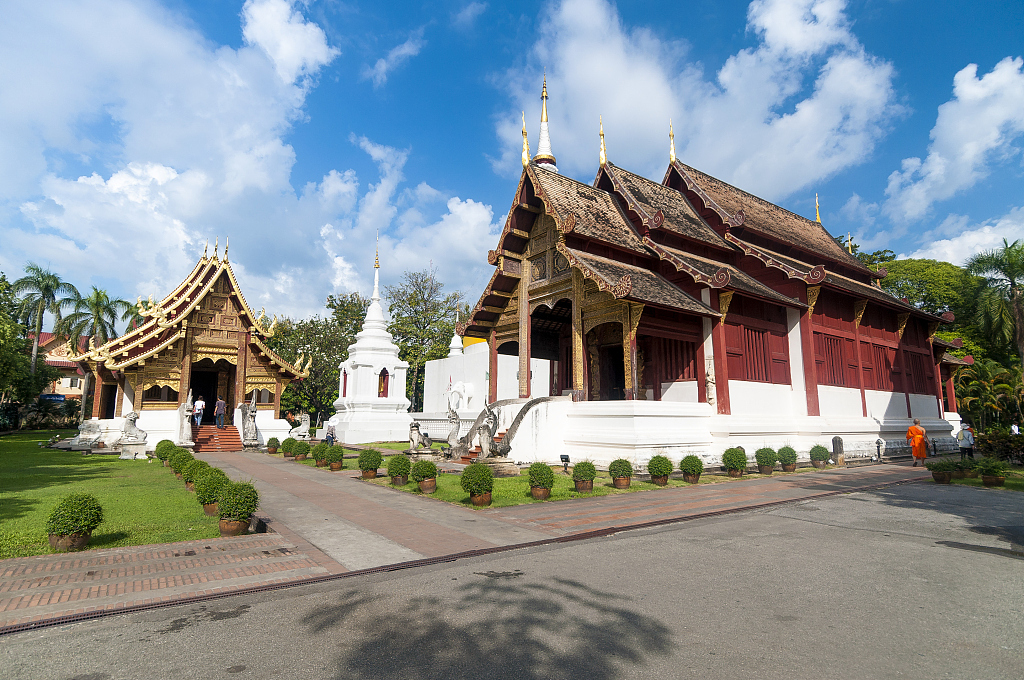 帕辛寺建于14世纪,是兰纳式建筑的典范,寺内供奉着Phra Singh的佛像,殿堂里的壁画以当地古代服饰和风俗为内容,被认为是泰国北部传统艺术的代表作。每年4月泼水节期间,清迈当地的人们会在这里请出佛像,欢度节庆。