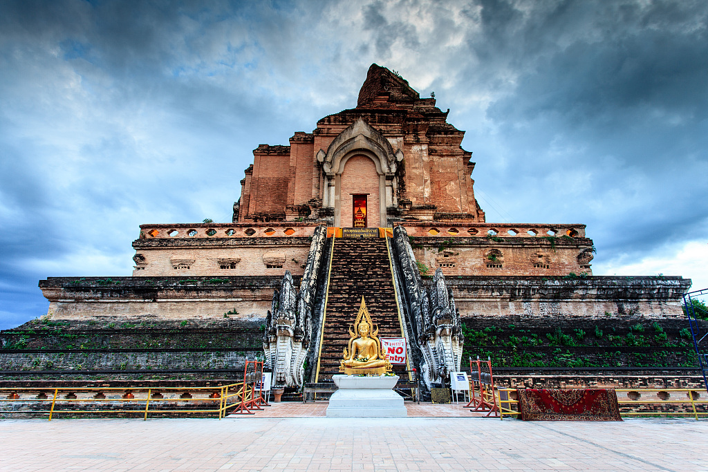 契迪龙寺为典型的古泰族王朝风格建筑,是清迈市内六大寺庙中最为著名、等级最高的寺庙。寺庙高大宏伟,门口以蛇和孔雀作为装饰元素,寺庙内有一座高达90米的大佛塔,里面供奉着巨大的佛像给人以敬畏和神圣之感。