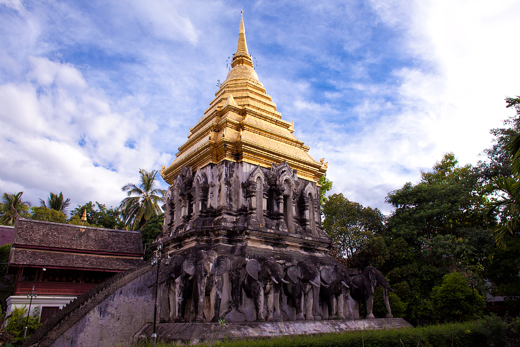清曼寺是清迈市内最古老的一座寺庙,寺内有一座由15只大象承载的塔,大象呈灰白色,塔顶金碧辉煌,整座塔棱角分明,富有个性。相比于清迈市内其他庙宇的宏伟庄严,这座寺庙则清凉静谧,充满自然灵气。
