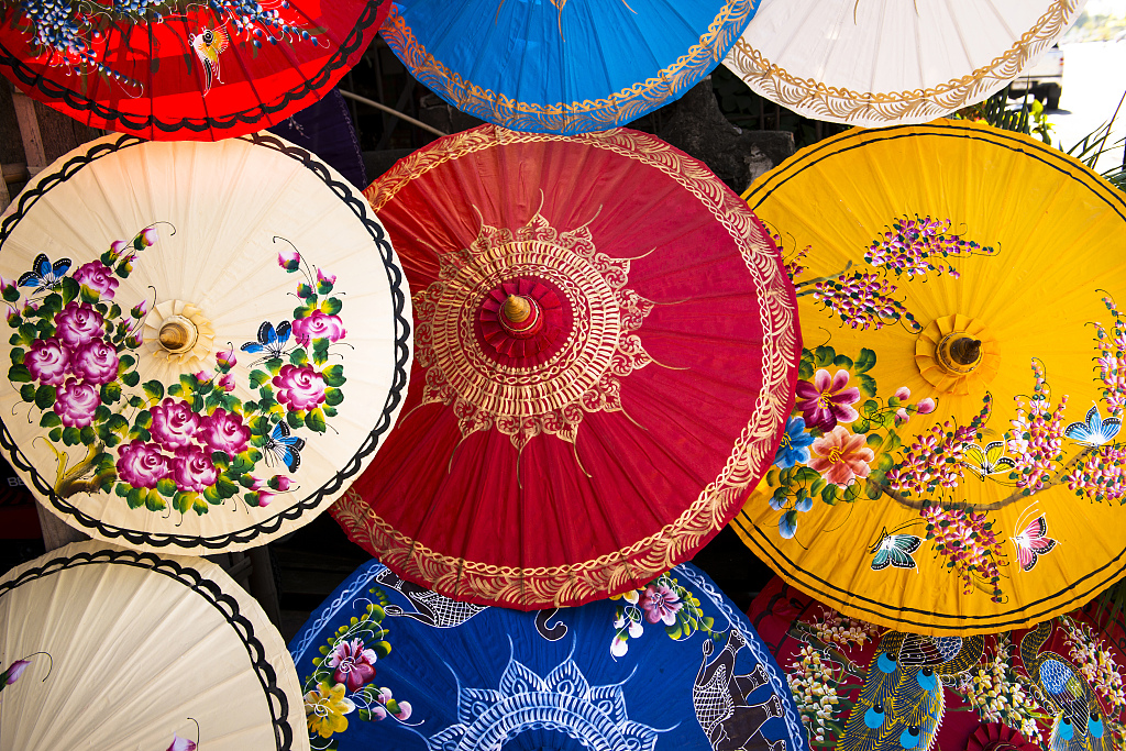 清迈手绘纸伞是清迈手工艺品的代表之一,伞面精致,绘画功底了得,具有很高的艺术价值和观赏价值。