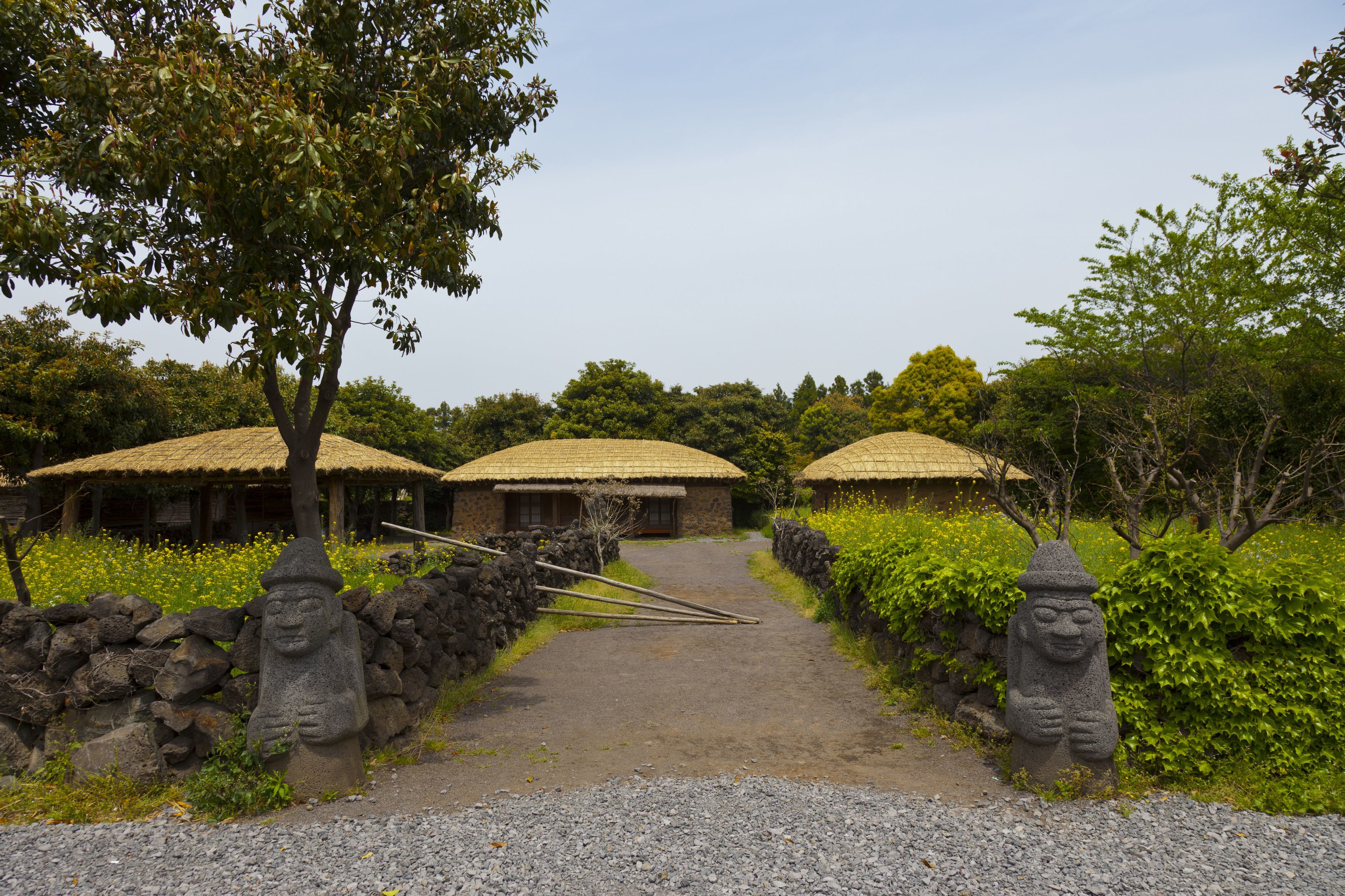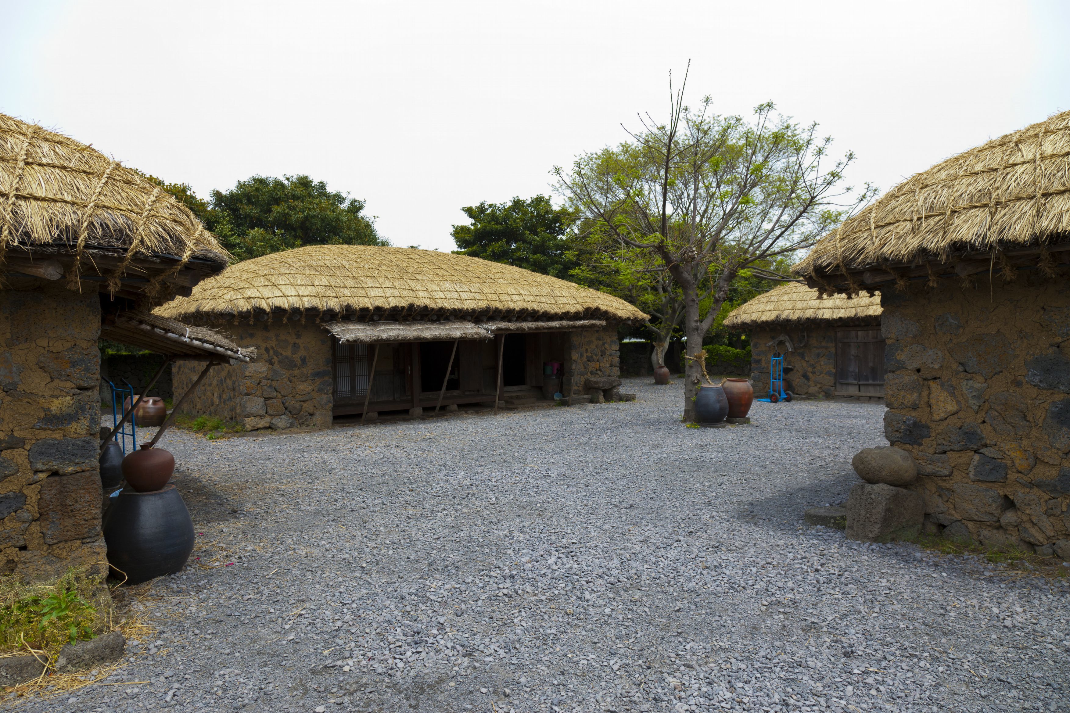 城邑民俗村是一处保留了济州古代村庄原貌的民俗村, 建筑材质仍是古时的黑熔岩石墙,狭窄曲折的宅胡同是古时为了防止海风直接吹进屋中而设计的布局。村内有古时民居、学校、关公署等原址,《大长今》中厨房的场景就是在这里拍摄。