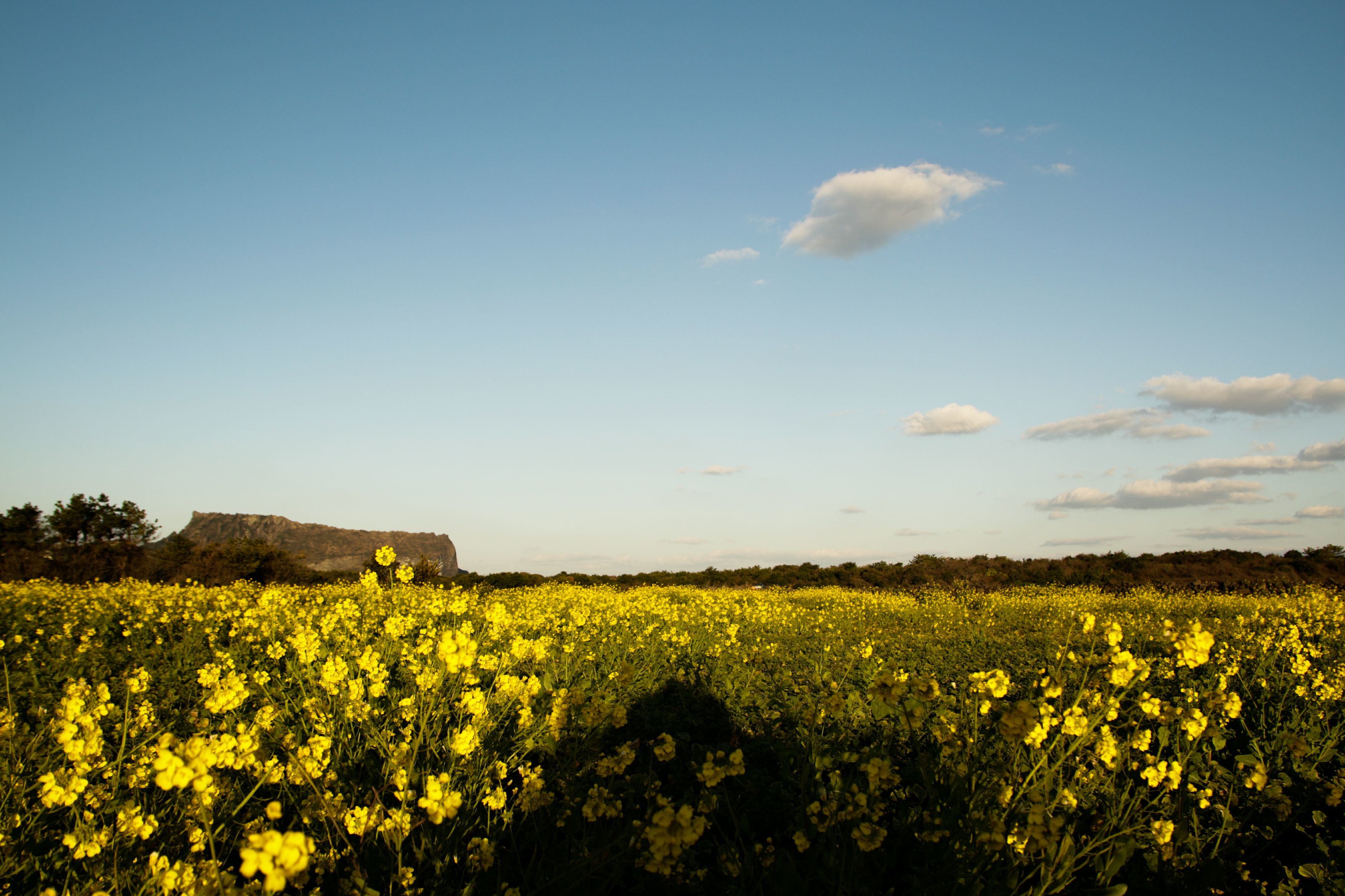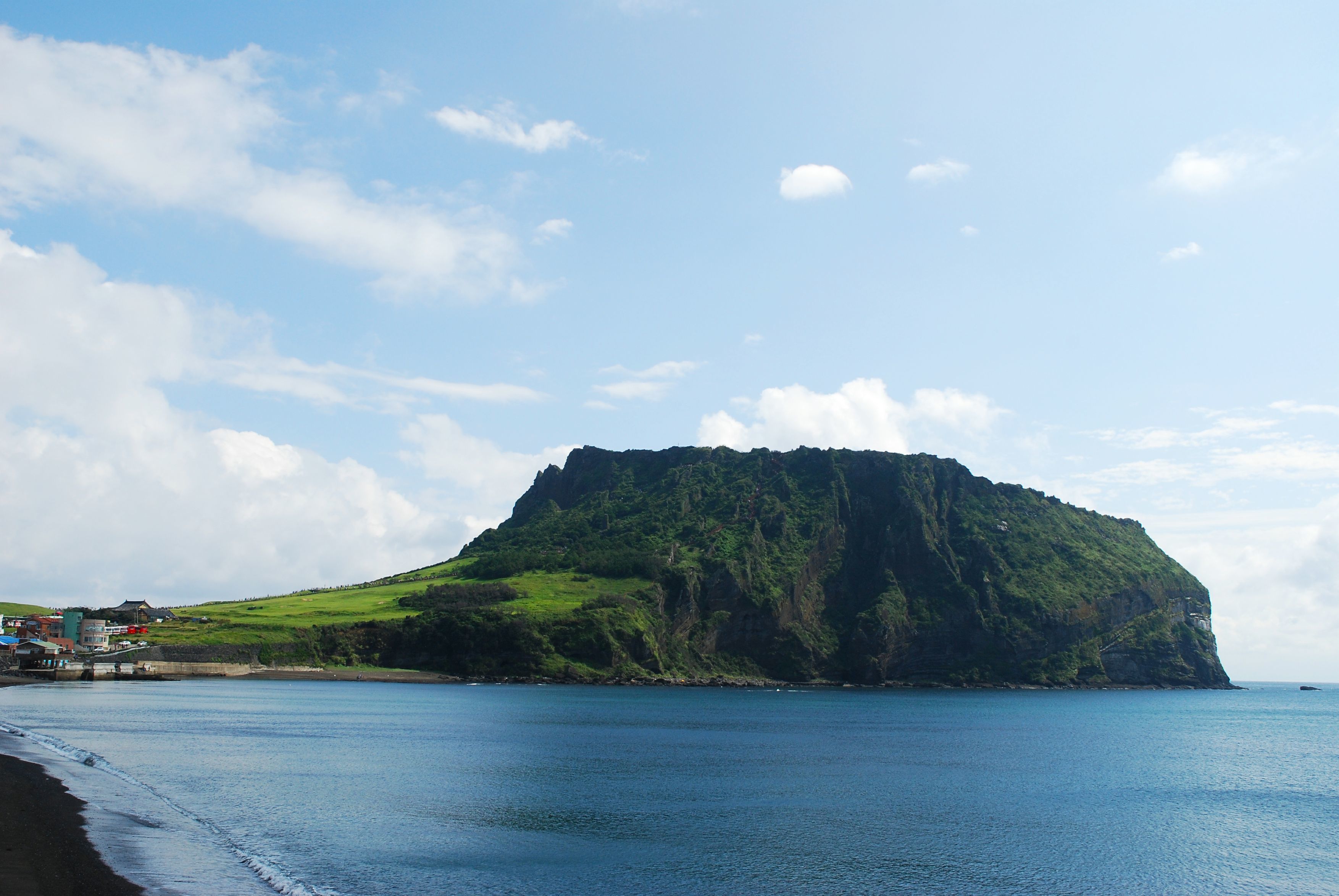 城山日出峰位于济州岛东端,是一块因海底火山爆发而形成的巨大岩石,山顶是巨大的火山口,山顶三侧为悬崖峭壁,另一侧的山脊是郁郁葱葱的草坪,可散步,也可以骑马。日出峰是观看日出的绝佳之地,尤其是当油菜花盛开之际,第一缕阳光照进山脊中的油菜花田,漫天上下一片金灿灿,景色令人叹为观止。