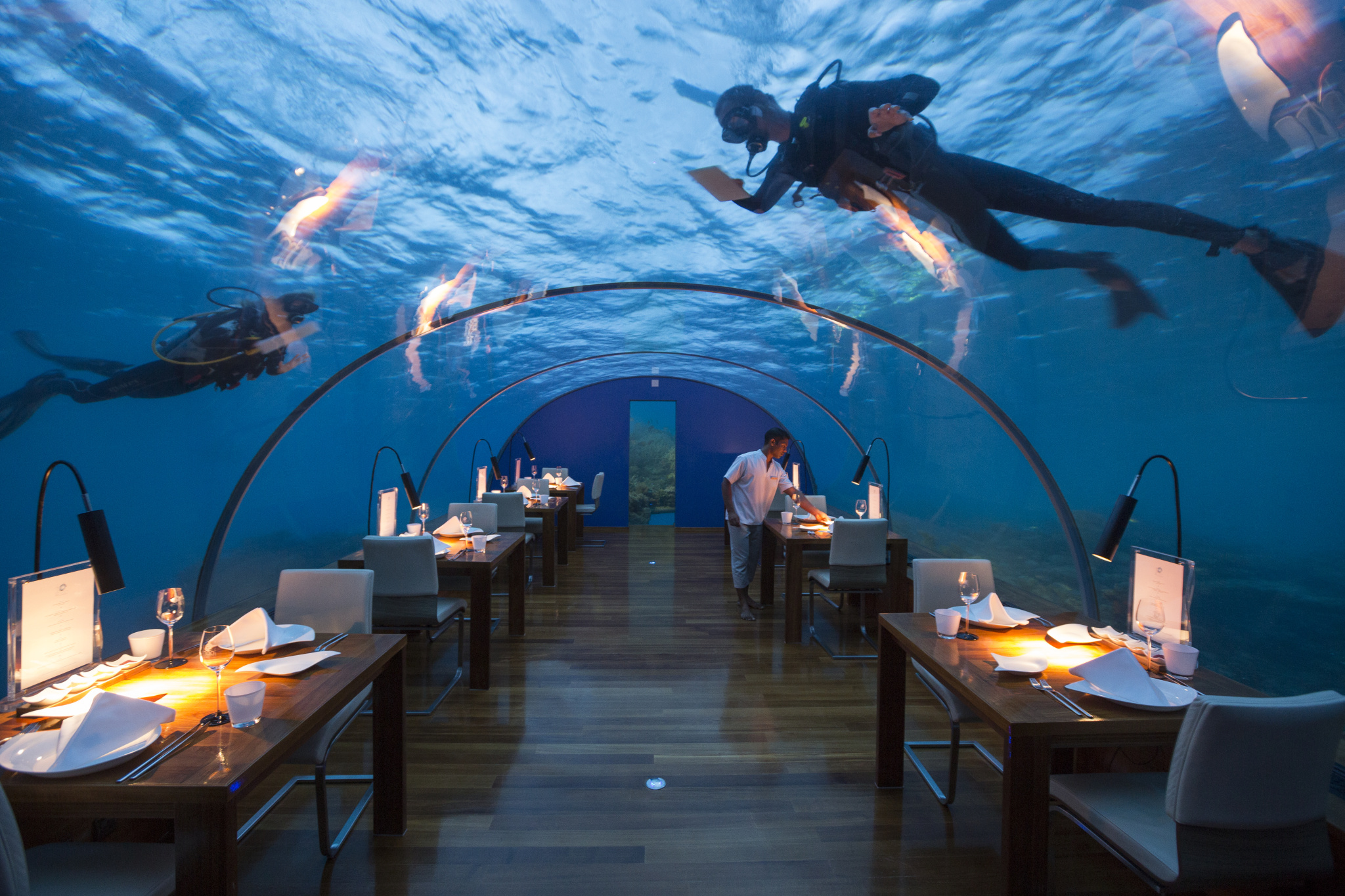 拍照指南:在海底餐厅就餐能照上几张与鱼儿共进晚餐的照片也很棒哦!