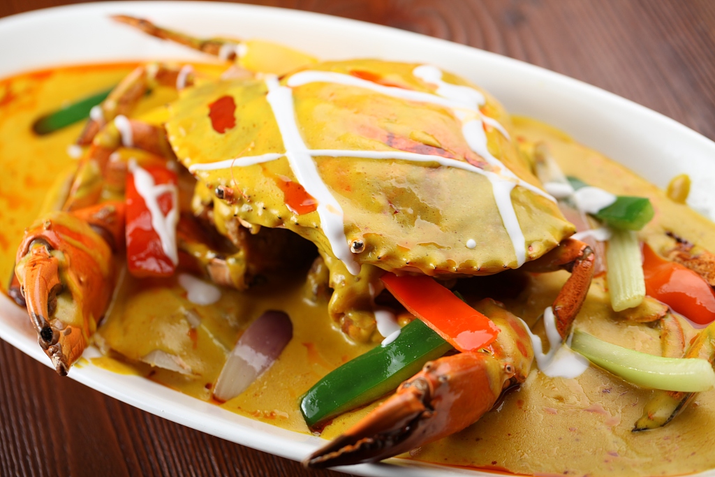 热爱泰国美食的人一定不会对咖喱炒蟹感觉到陌生,它也是泰国特色美食的代表。将泰国红蟹切块,搭配泰国青木瓜,加上泰式咖喱与虾米、辣椒、柠檬汁等各色泰式香料,最终为吃货们做出的咖喱炒蟹,蟹肉饱满劲道,汤汁香辣微酸,十分可口。