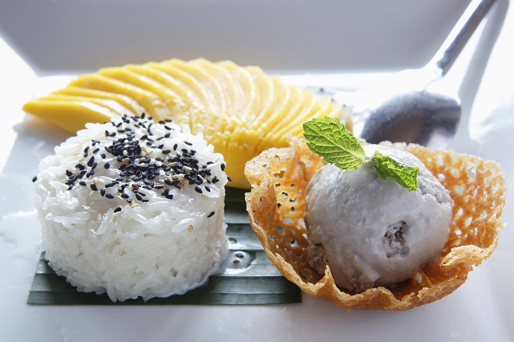 泰式经典主食芒果糯米饭对于喜欢吃甜食的姑娘来说,永远是一个无法抵抗的诱惑。香甜的芒果已让你食欲大开,而糯米饭融入了椰浆的香浓之后,也变得更加软糯可口,两者搭配在一起,清新爽口,仿佛吃上一口就能心情变好呢!
