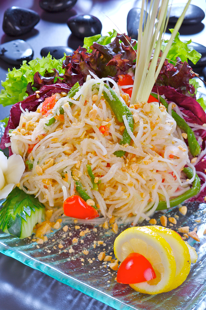 泰国人喜欢以青木瓜沙拉作为开胃小菜,青木瓜的清脆与花生碎粒的香,再加上泰国辣椒引出青木瓜的脆甜,十分爽口。不过需要注意的是,如果不喜欢鱼露、虾酱和蒜头,需要先跟老板说清楚。
