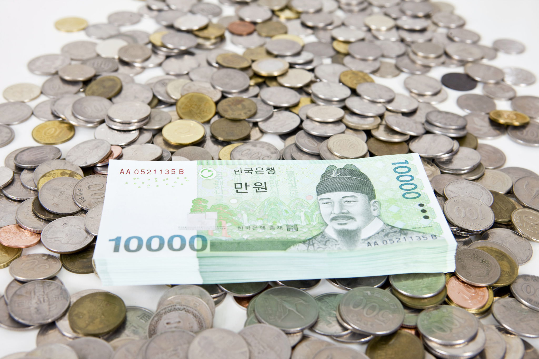 注释:纸币有1000韩元、5000韩元、10000韩元、50000韩元四种;韩国现流通的硬币有10韩元、50韩元、100韩元、500韩元四种。