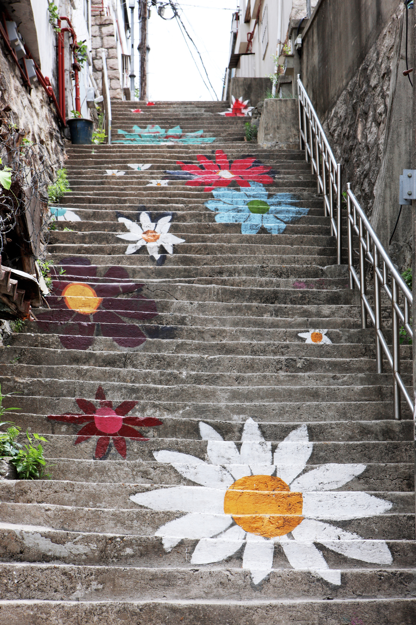 梨花洞壁画村本来是个平凡小镇,后来被韩国艺术家们用艺术的形式变得美丽动人,他们在墙上和楼梯上画了各种色彩明丽的图画,栩栩如生,让人心情明快。