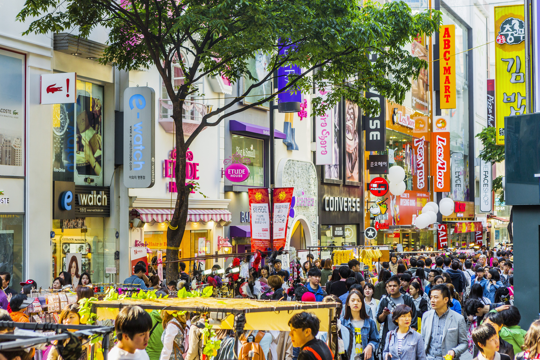 很多人都选择明洞作为购物的第一站,明洞被称为购物的摇篮,这里的美妆产品销售额每天都是惊人的数字。