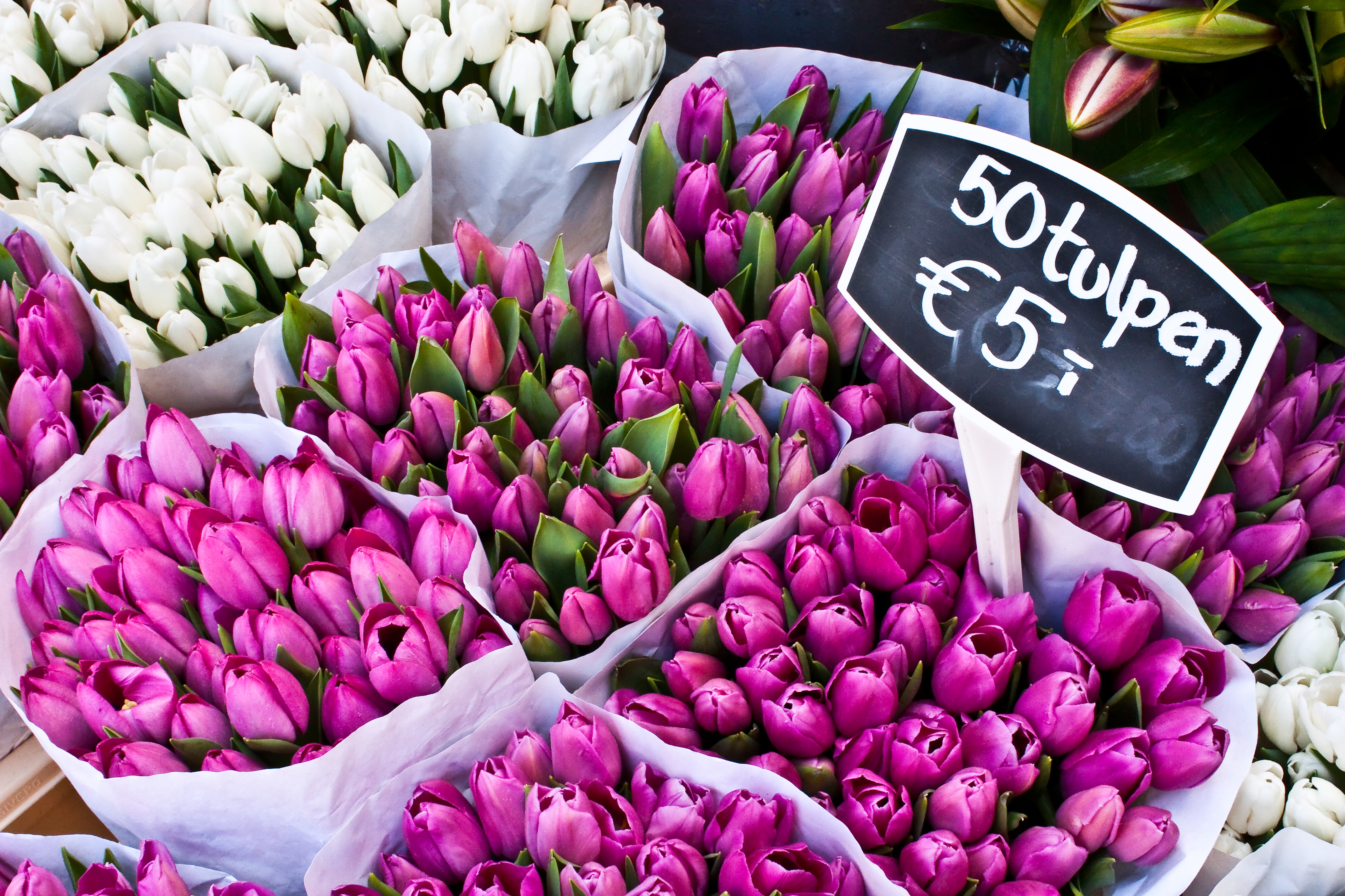 运河沿岸的鲜花市场,在这里可以买到各种品种的郁金香和水仙花等, 而且都特别新鲜娇艳,这里也是阿姆斯特丹最芳香的地方。