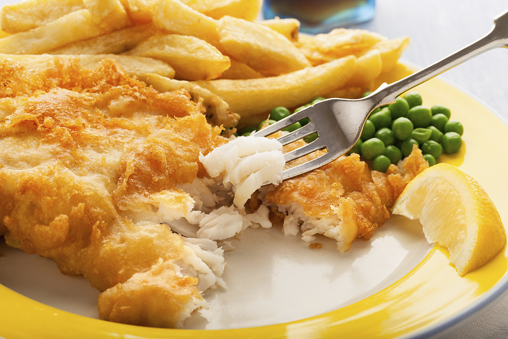 炸鱼薯条是英国最具代表性的美食,之前国家主席访问英国时,英国前首相卡梅伦就用炸鱼薯条招待了他。英国人制作炸鱼薯条时,是将去掉鱼骨的鱼切成片后裹上湿面团油炸而成,再搭配松软可口的炸薯条,吃的时候还会配上不同口味的调味酱,来到英国不可错过。
