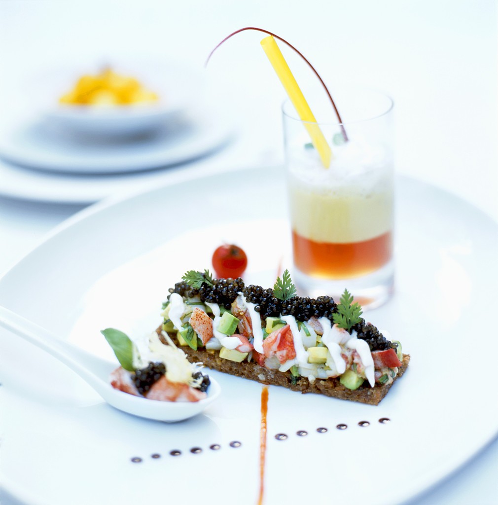 鱼子酱味道鲜美,营养价值丰富,但产量较为稀少,俄罗斯人通常将鱼子酱和其他食材搭配食用,最常见的吃法有鱼子酱沙拉、鱼子酱面包等。
