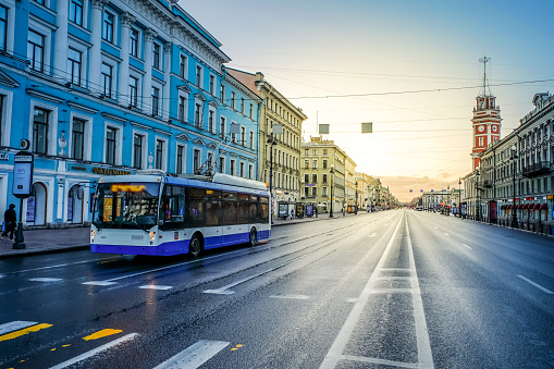 圣彼得堡有轨电车的历史比较悠久,但由于电车比较老旧,因此不建议旅行者搭乘,它更适合成为镜头的拍摄对象,在晚上特别漂亮。