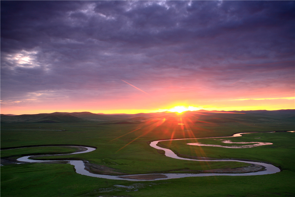 有着“天下第一曲水”之称的莫尔格勒河坐落于陈巴尔虎草原深处,与它相伴而生的是金帐汗蒙古部落。每到水草丰茂的季节,牧民从草原各地赶来聚集于此,开始一段时期的游牧生活。广袤的草原上弥漫着青草和野花的香气,河水宛如一条玉带盘卧在绿毯之上,夕阳的余晖夹杂着几分忧愁和浪漫,缓缓地渗进人们的梦中。