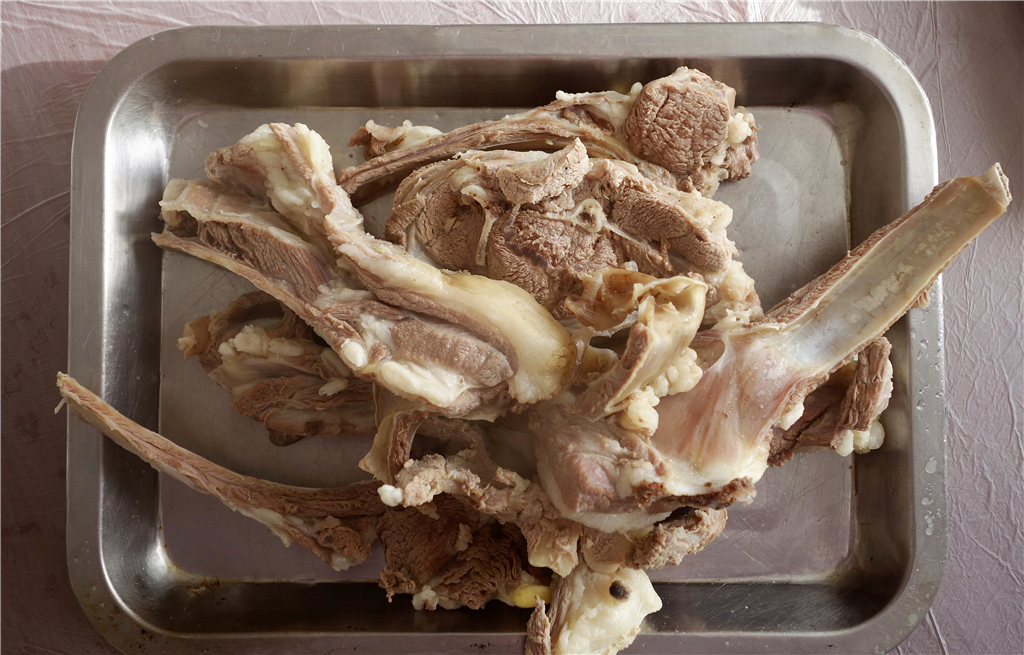 顾名思义,"手把肉"的一大特点就是它近乎原始的食用方法。在内蒙古,手把肉是牧民的家常便饭,把鲜嫩的羊肉放进沸水中炖煮,不添加任何佐料,待到肉香溢出时,再用手抓起羊骨棒,蘸上酱油等调料,大口吃肉,大口喝酒。来草原做客,一定要吃一顿正宗的手把肉才算不虚此行。
