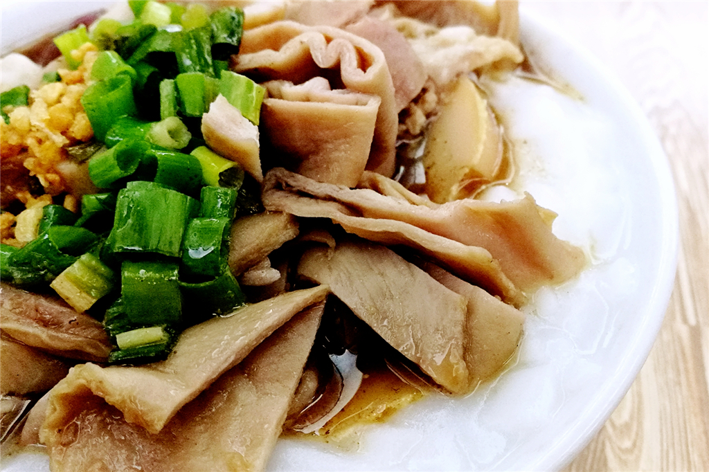 尖米丸是潮汕地区的传统小吃,是用米浆制作而成。当地人用一个特殊的模具将米浆制作成两头尖的长条状,柔软嫩滑,加入骨汤和葱花,味道更鲜美。