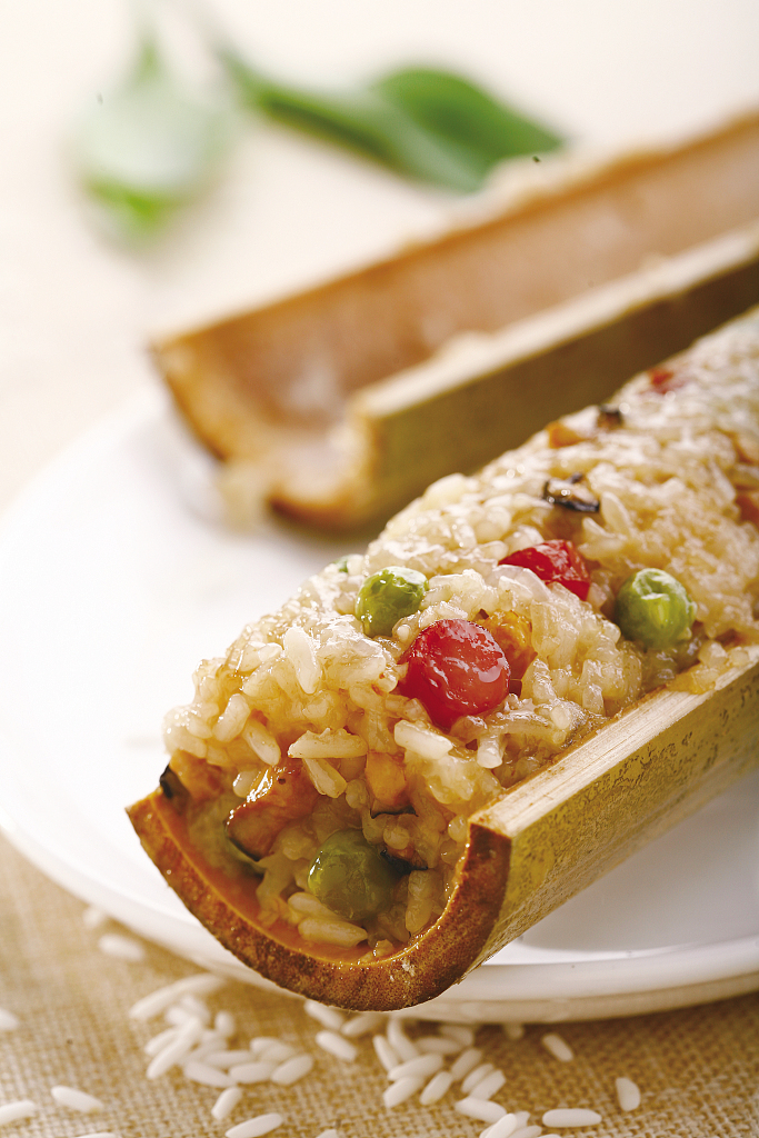海南黎家竹筒饭属于海南黎族的传统美食,用新鲜的竹筒包裹兰山大米或者已经烤熟的饭食,再取新鲜的竹叶插进去,味道清香鲜甜。