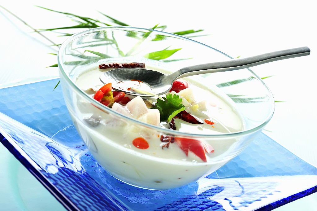 海南盛产的椰子仿佛可以用在任何一道菜品上,当地人用椰奶做汤底,加上优质的文昌鸡小火慢炖,椰子的清香与鲜嫩的鸡肉搭配在一起,既滋补又美味。