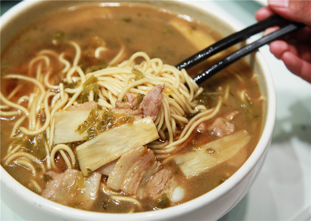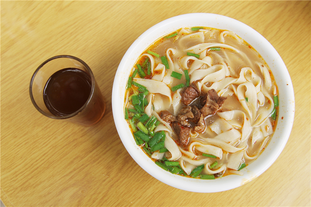 牛肉板面好吃在它的汤和面,汤用各种配料熬制而成,牛肉粒也在其中,非常入味。挑起一根面,大约有两厘米宽,是在板子上抽打而成。入口非常劲道有嚼劲,一口汤一口面,爱吃辣的游客可以尝尝板面里的辣椒,真是赛神仙。
