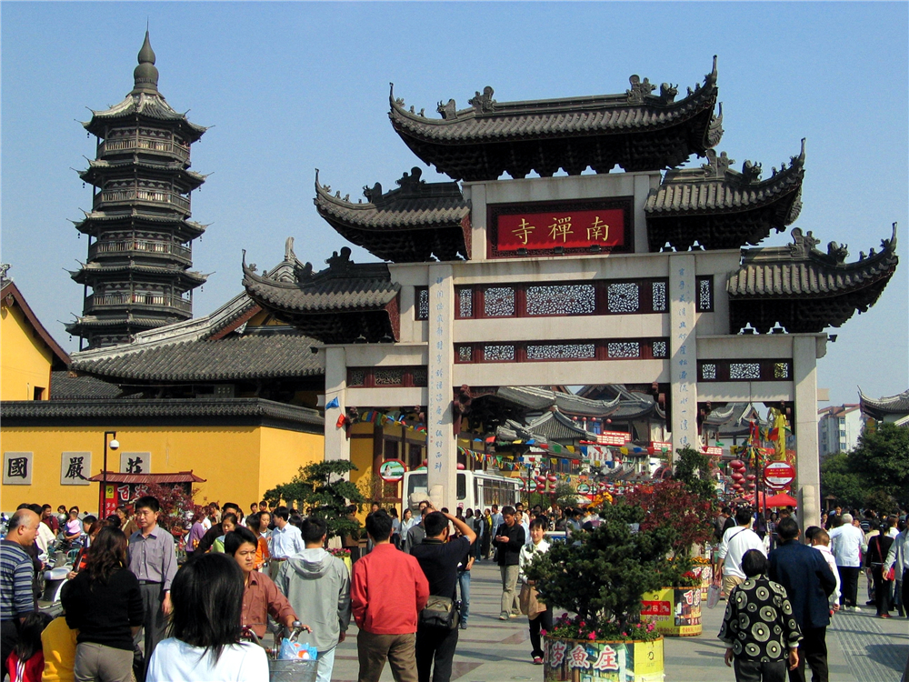 南禅寺历史悠久,始建于南朝时期,距今有一千多年的历史,是古诗中提到的“南朝四百八十寺”之一。这里香火很旺,每逢佛教的重要节日,这里都会举行法会。经过时代的变迁,南禅寺一带已经变成了无锡的商业圈,寺庙周围有小吃街、古玩城、花鸟市场等。