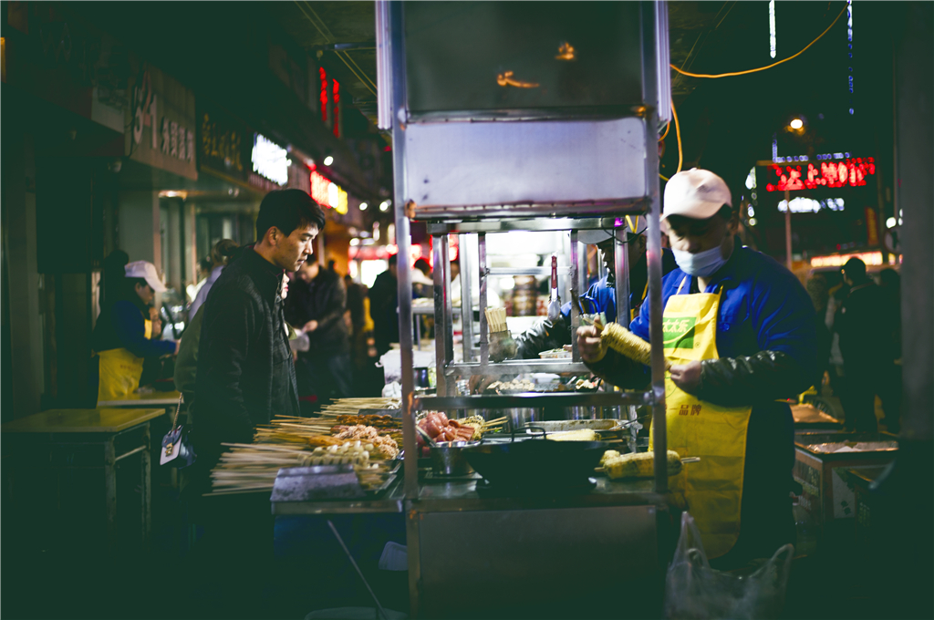 延安大东门夜市整齐干净,每个摊位都有统一的配置,店家的着装也是统一的。这个夜市大概会颠覆你对夜市脏乱差的传统印象。大东门夜市一般是从下午六点营业到凌晨四点,就算是冬天,大东门夜市的生意依然红火。