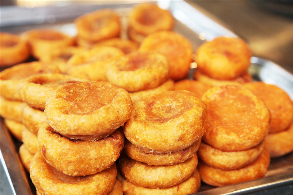 油糕又叫年糕,是一种油炸的糕点,主要原料就是黄米,是陕北地区的传统风味小吃。当年红军到达陕北地区时,当地人民就用油糕来款待他们。油糕是一种低糖食品,色泽金黄,口感软糯,味道香甜,老少咸宜,每逢佳节各家各户都会做油糕来吃。