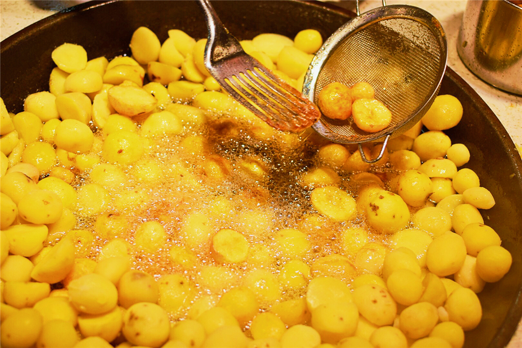 炕洋芋是宜昌当地的特色美食,洋芋就是土豆,炕是当地一种独有的,介于煎与炸之间的一种烹调食物的方式。炕熟后,洋芋吃在嘴里感觉不油,有种烤熟的香甜感。外皮焦黄,内里软糯,十分美味可口。