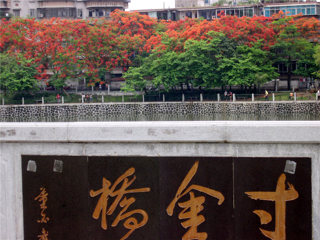 寸金桥曾经名为赤坎桥,当年在抗法斗争中,民族英雄们为保卫祖国,怀着赤子之心在桥上题诗、题名,因郭沫若”一寸河山一寸金“,这一和保卫家园有关的一句诗,使”寸金桥“声名大噪。