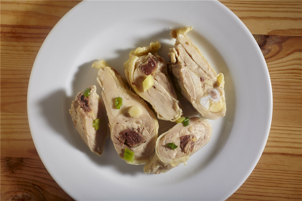 白切鸡是粤菜系中最普通也是非常经典的一道菜,做法极为简单,白切鸡充分保存了鸡的清淡鲜美,鸡皮弹脆,肉质滑嫩有嚼劲,因为白切鸡属于浸鸡类做法,刚熟而不烂,所以清淡又有嚼劲。