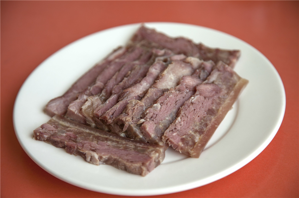 肴肉是湛江名菜,主料就是猪前蹄,经过腌制加工,煎炒至金黄微焦脆,这样的猪蹄肉不腻而且有点酥酥的口感,鲜嫩多汁,所以又称为水晶肴蹄。