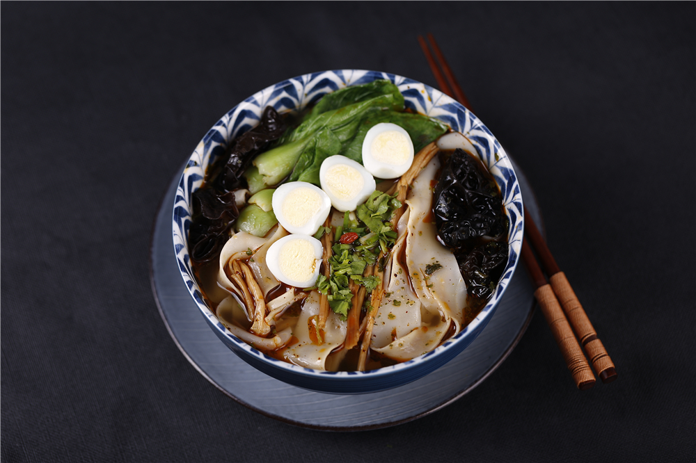 烩面是选用上好鲜羊肉炖煮为原汁肉汤,下面时,锅内放原汁肉汤,将面拉成薄条入锅,放上羊肉,配以黄花菜、木耳、水粉条。上桌时外带香菜、辣椒油、糖蒜等小碟,其味更鲜。