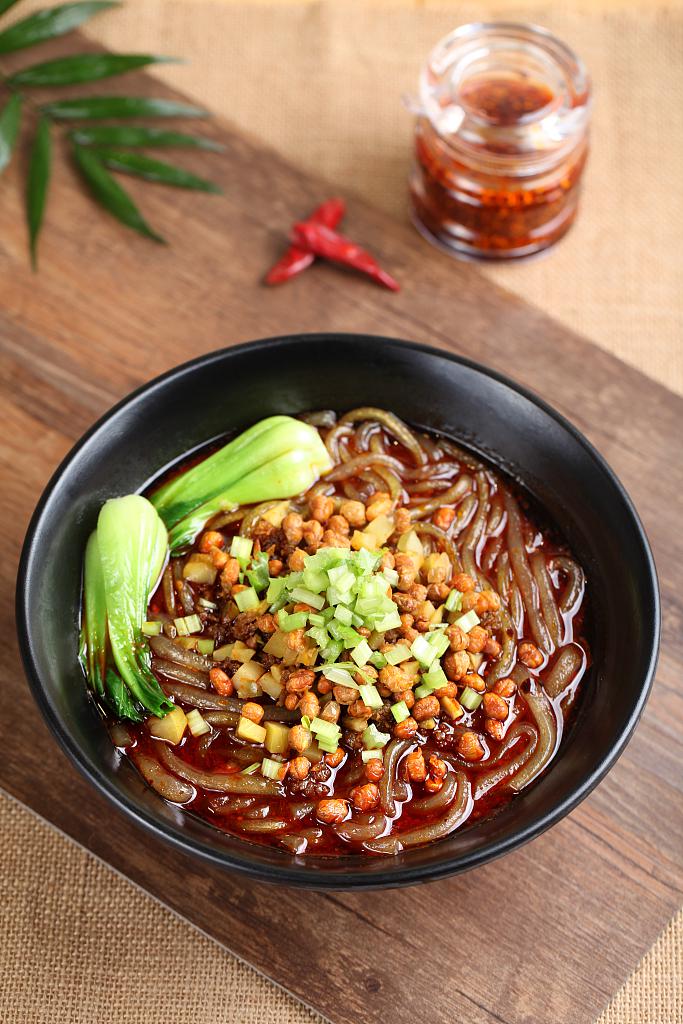酸辣粉源于西南民间,是四川省、重庆市、贵州省等地的传统特色小吃,属于渝菜、川菜、贵州小吃。其特点是麻、辣、鲜、香、酸且油而不腻。 重庆正宗的酸辣粉在制作粉上极为考究,将红薯粉、黄豆淀粉以及其他淀粉按比例混合后采用独特的手工漏制制作,粉丝筋道弹牙。在浇臊和配料的选用上更为讲究,只选择重庆本地制作的辣椒和辣椒粉,醋只选择保宁醋,肉臊子的制作同样考究。