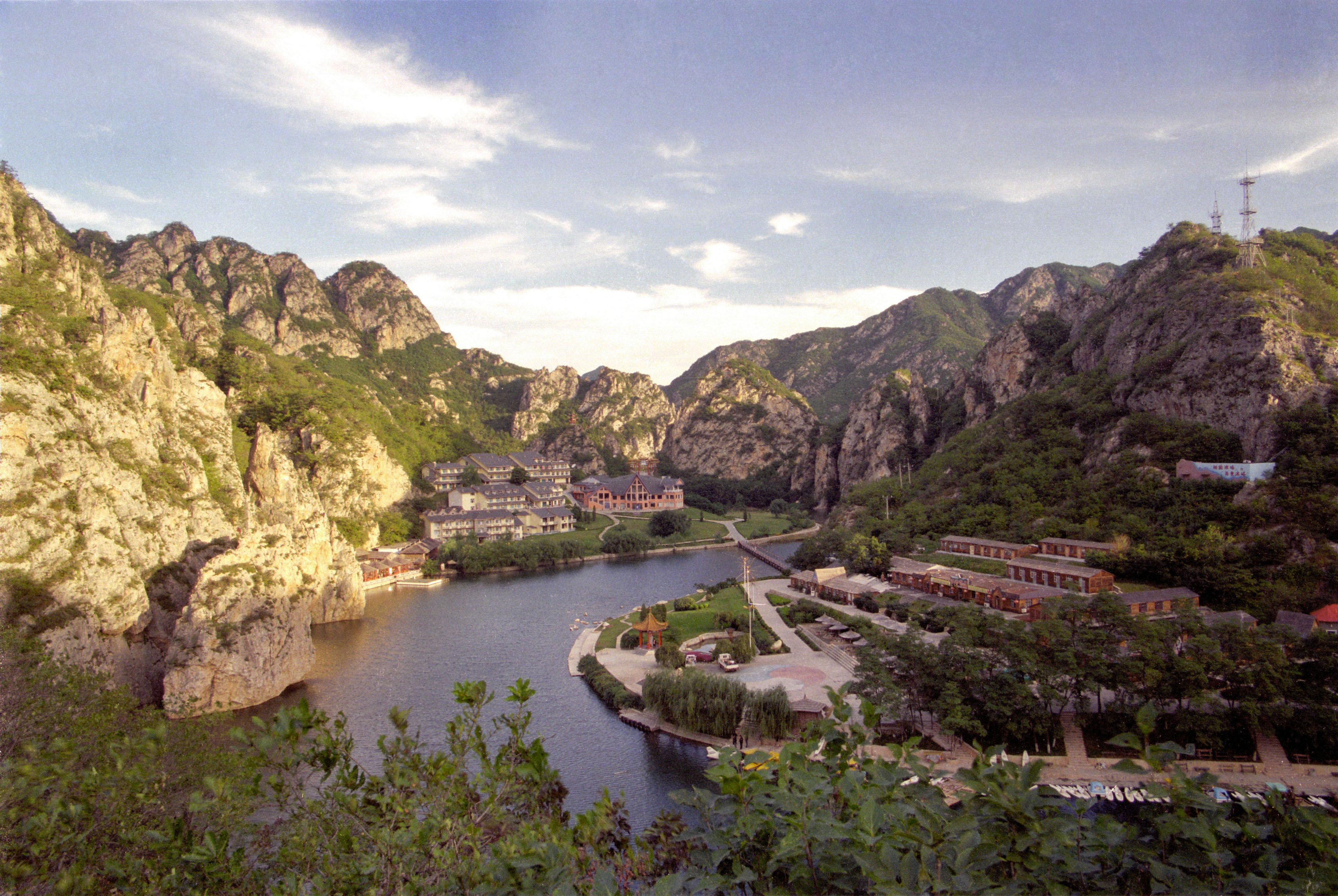 冰峪沟因其壮丽的山水之景而被誉为“北国桂林”。这里犹如与世隔绝的桃源胜境一般,四季皆有万般绮丽之景:春季明媚和气的盎然之意、夏日草木蓊郁的盛丽之境、秋天层林尽染的斑斓之色、冬日银装素裹的壮丽之象。冰峪是“兵御”的化称,源于唐太宗李世民到此扶军时的赐名,颇有荡气回肠之感。冰峪沟的沟谷峥嵘崔嵬,英纳河如丝绸般蜿蜒盘旋于其间,河水清而透亮,沙滩洁白柔软,是一处让你惊叹于自然鬼斧神工的绝妙之地。