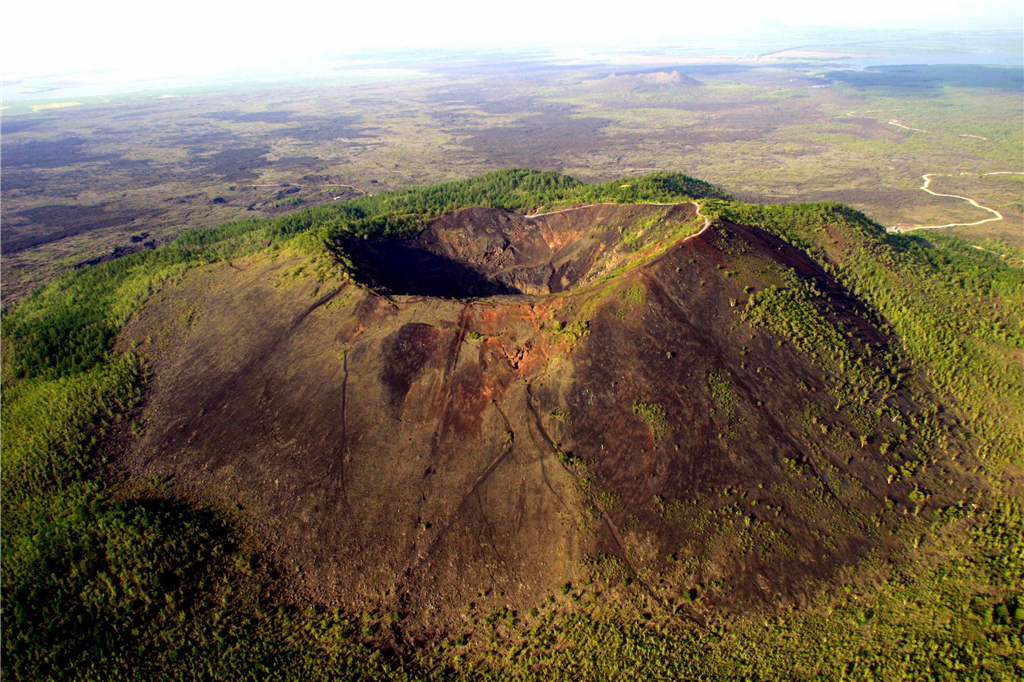 它是这片火山群中最高的一座,山如其名,深黑色的怪石遍布山林。令人惊喜的是,形态各异的石头像一个个鲜活的动物,有的巍峨似熊,有的凶猛似虎,有的又好像蜿蜒的巨蟒盘踞在山坡,目之所及,尽是一幅栩栩如生的画面,让人不得不感叹于大自然的神奇。在一片石海中,生长着一丛丛碧绿的灌木,象征着生命力和希望,给老黑山增添了无限生机。