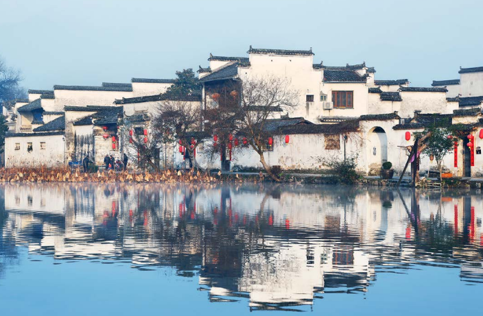 宏村是我国具有代表性的徽派民居村落之一,素有“画里的乡村”美誉。黑瓦白墙的徽派建筑在烟雨时节恍若一幅水墨画,美得别有韵味。当三四月油菜花开时,掩在明黄色油菜花田后的民居,便又多了几分明艳的色彩。除了美景如画,宏村内的徽派民居建筑值得旅行者细细游览,村中的南湖桥和月沼湖还吸引了电影《卧虎藏龙》在此取景。