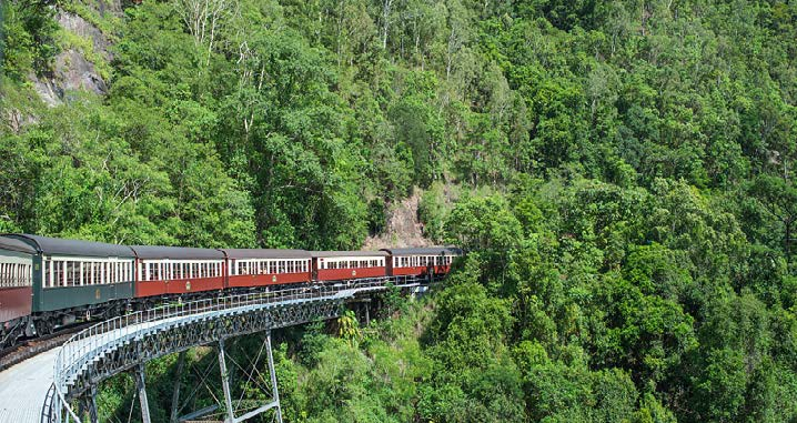 库兰达小火车往返于凯恩斯市区与库兰达之间,外形充满复古风情,穿行热带雨林景观之间,森林、瀑布美景应接不暇,无论是沿途景色还是火车本身都是一道亮丽的风景线。
