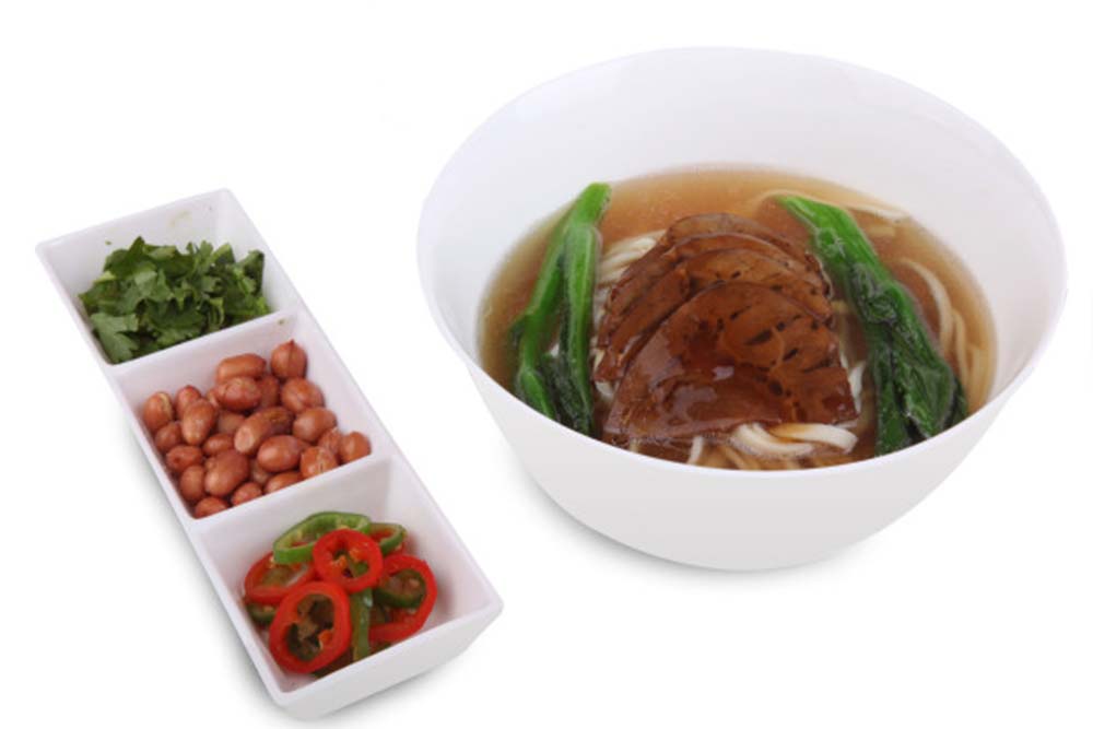 南航牛肉大碗面——独创金牌产品:精心熬制的浓郁牛骨汤,劲道十足的手工拉面,加上精选的内蒙古牛腩、牛筋,配以芫茜碎、辣椒圈和炸花生米,满满的幸福口感!