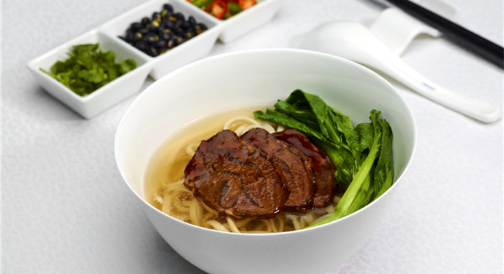 • CSAIR Noodles—An original signature food: Delectably brewed beef bone broth, paired with perfectly chewy handmade noodles, and complemented by prime Inner Mongolia beef brisket and tender tendon, finely minced parsley, zesty pepper rings, and crispy fried peanuts, this dish embodies the essence of pure happiness!