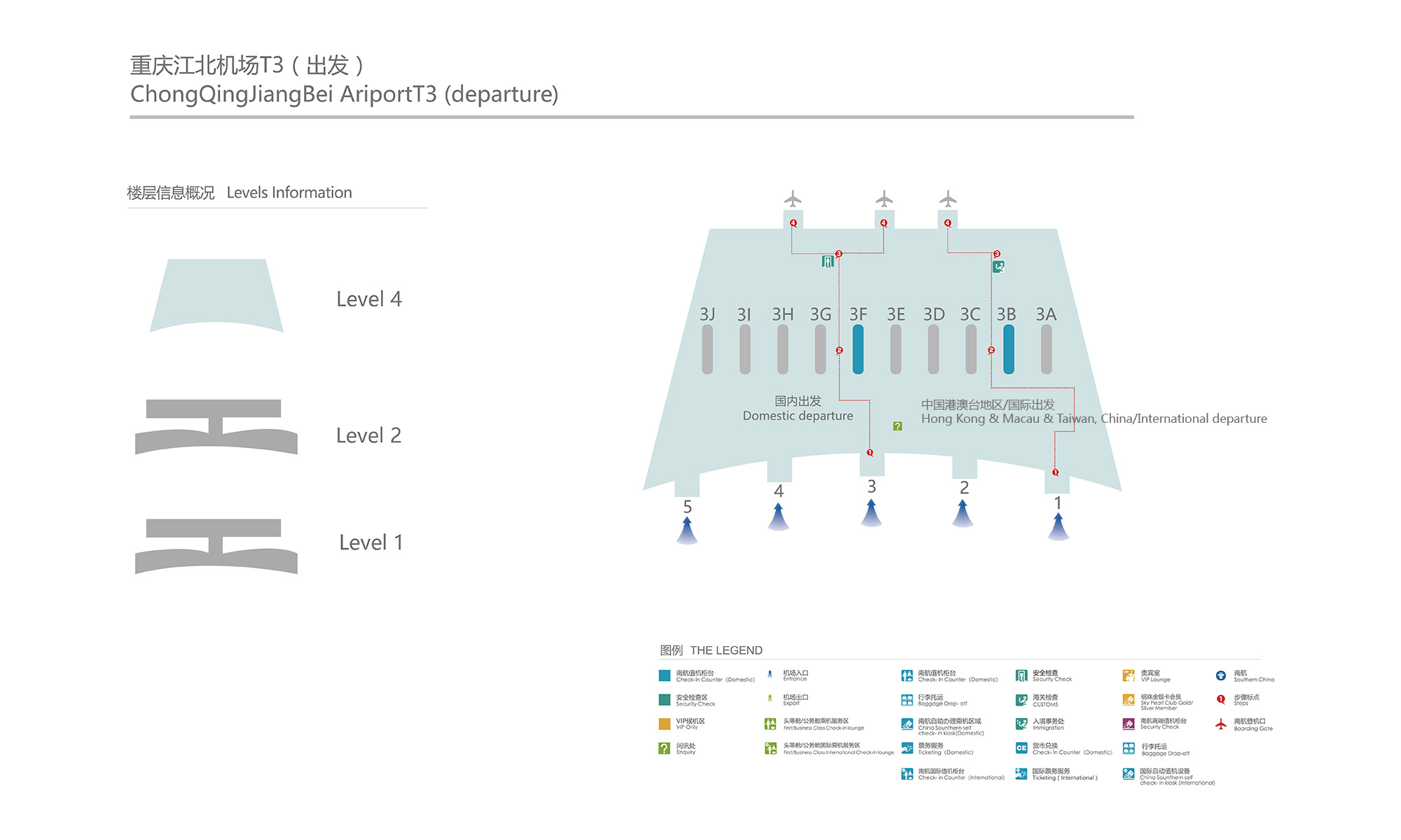 重慶江北國際機場T3A航站樓L4層3F島(出發3-4號門之間)