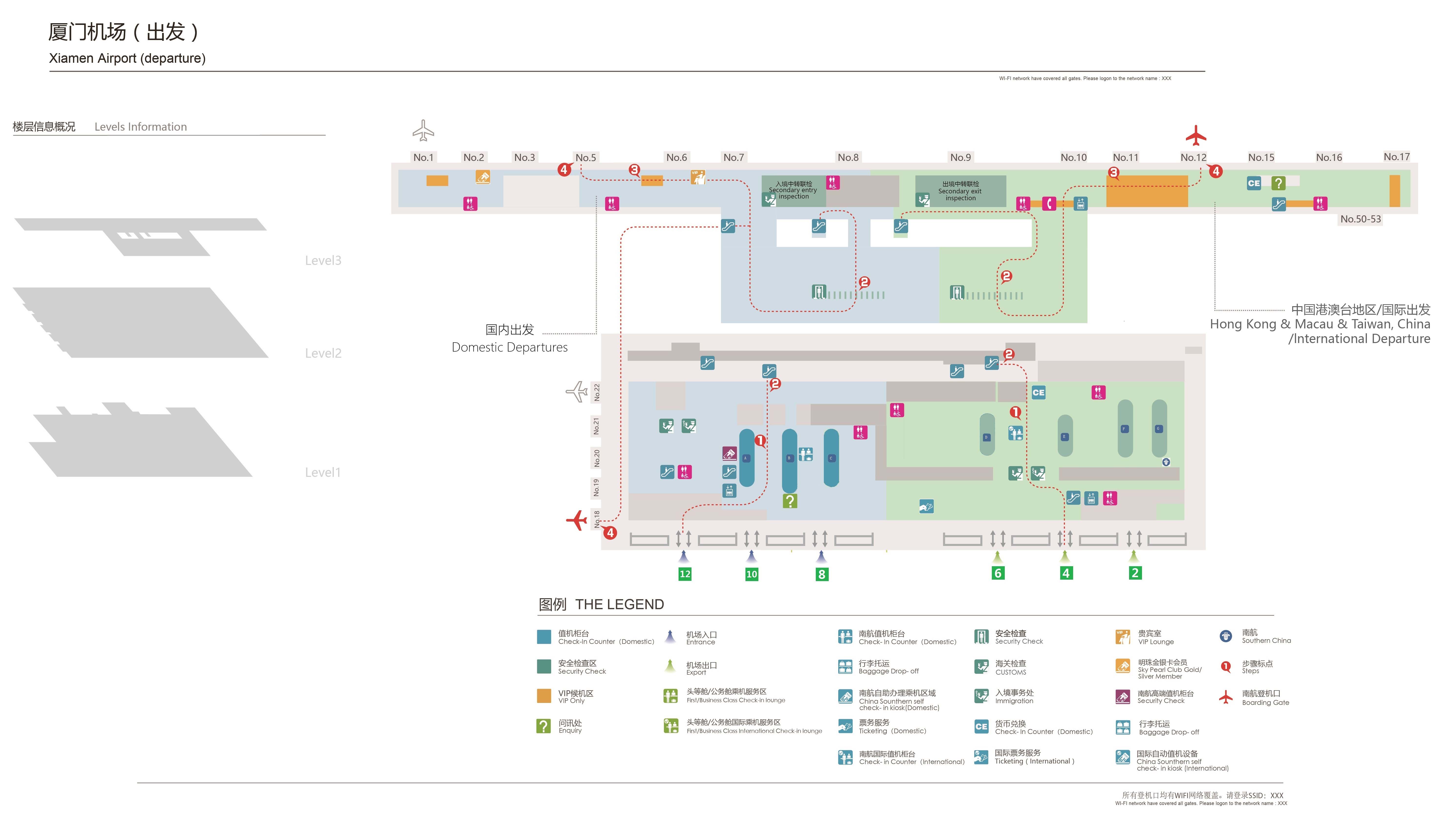 國內:國內出發廳值機A、B、C島(C島僅辦理廈門至重慶航班)