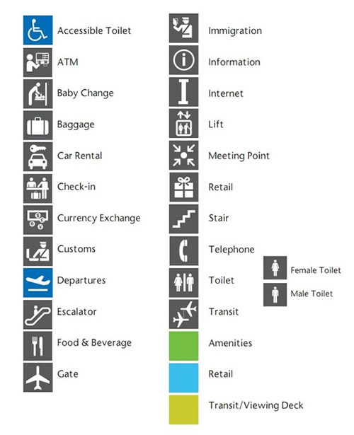 | 嬰兒尿布更換間 | 位於登機以及到達大廳內。 |